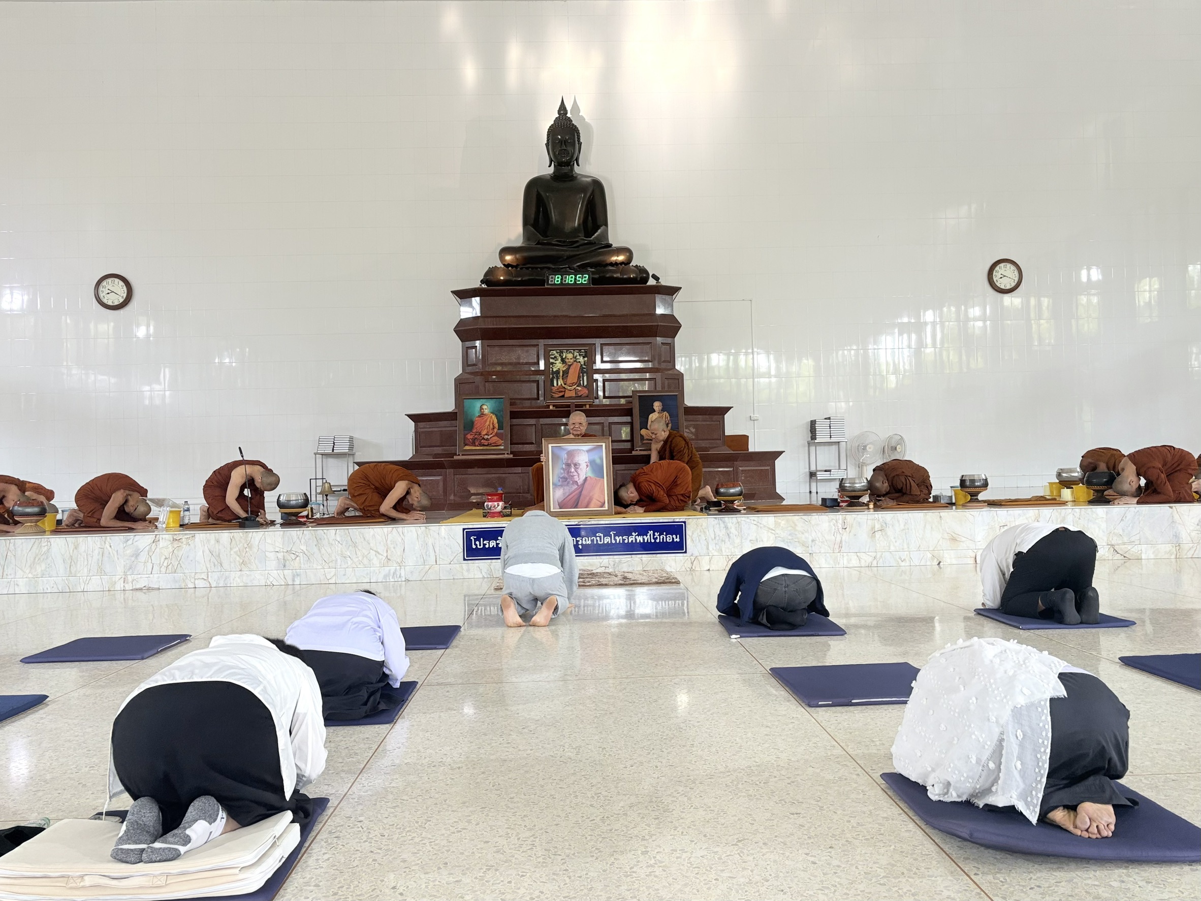 ครั้งพุทธกาลเอาวัน ๗ ค่ำ ๘ ค่ำ เป็นวันหยุด เอาวัน ๑๔ ค่ำ ๑๕ ค่ำ เป็นวันหยุด สากลปัจจุบันนี้เอาวันเสาร์วันอาทิตย์ก็เช่นเดียวกันกับครั้งพุทธกาล จะอดีตอนาคตให้พวกเรารู้เข้าใจก็เป็นปัจจุบัน สิ่งที่โคจรเป็นวินาที นาที ชั่วโมง วันเดือนปีนั้นเป็นการโคจรของโลกที่โลกหมุนรอบตัวเอง หมุนรอบดวงอาทิตย์ เราต้องมารู้มาเข้าใจว่าทุกอย่างนั้นมันคือปัจจุบัน เรามีตาถึงมีรูป มีหูถึงมีเสียง มีจมูกถึงมีกลิ่น มีลิ้นถึงมีรส มีกายถึงมีสัมผัส มีใจถึงมีความรู้สึกนึกคิด ให้รู้เข้าใจว่าเพราะสิ่งนี้มีสิ่งต่อไปมันถึงมี เราต้องพากันรู้พากันเข้าใจ เราทุกคนจะได้ว่างจากสิ่งที่มีอยู่ ความรู้ความเข้าใจจะได้เป็นทานศีลสมาธิภาวนา สิ่งทั้งหลายทั้งปวงนั้นจะจบลงที่ปัจจุบัน จบลงที่ผัสสะ