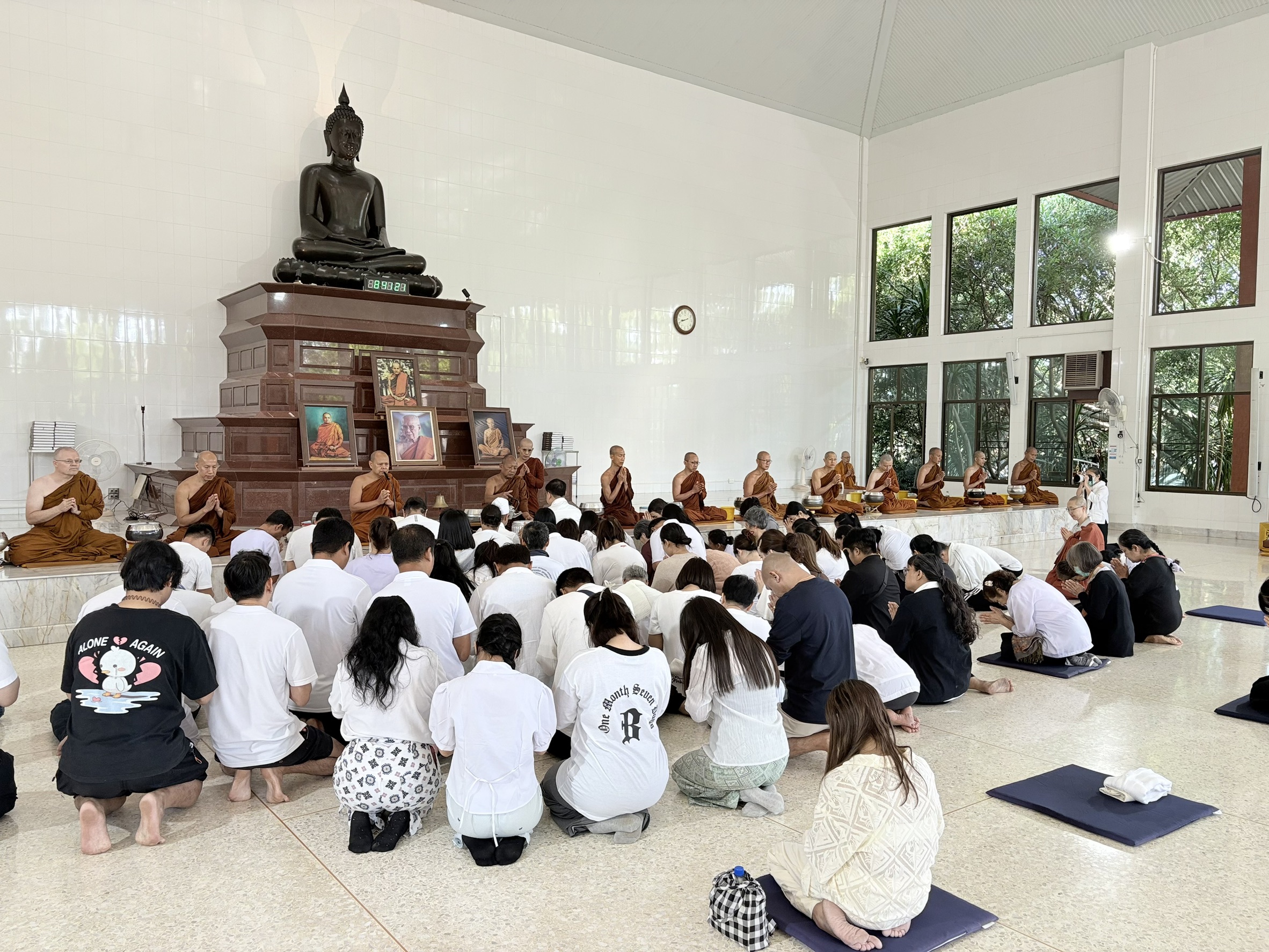 พสกนิกรชาวไทยและชาวต่างประเทศได้มาร่วมรวมกันประพฤติปฏิบัติธรรมเพื่อน้อมถวายเป็นพระราชกุศลแด่สมเด็จพระนางเจ้าสิริกิติ์ พระบรมราชินีนาถ พระบรมราชชนนีพันปีหลวง ด้วยความโทมนัสและสำนึกในพระมหากรุณาธิคุณอันหาที่สุดมิได้ ที่พระองค์ได้ทรงมีต่อพสกนิกรชาวไทยและชาวโลกตลอดระยะเวลาที่ยาวนาน พระองค์ทรงเป็นดั่งแม่แห่งแผ่นดิน ผู้ทรงเปี่ยมด้วยพระเมตตาและพระปรีชาสามารถ ทรงอุทิศพระวรกาย พระสติปัญญา และพระราชหฤทัยในการบำเพ็ญพระราชกรณียกิจนานัปการ เคียงคู่พระบาทสมเด็จพระบรมชนกาธิเบศร มหาภูมิพลอดุลยเดชมหาราช บรมนาถบพิตร เพื่อธำรงไว้ซึ่งความผาสุกและความมั่นคงแห่งชาติไทย เราประชาชนชาวไทยต้องร่วมใจสมัครสมานสามัคคีทำความดีที่ประกอบด้วยปัญญา เพื่ออุทิศบุญกุศลน้อมเกล้าถวาย เพื่อเสด็จสู่สวรรคาลัย เข้าสู่สวรรค์มรรคผลพระนิพพาน